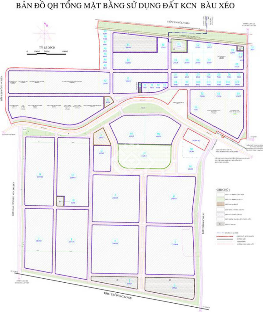 Bản đồ quy hoạch tổng mặt bằng sử dụng đất Khu Công nghiệp Bàu Xéo
