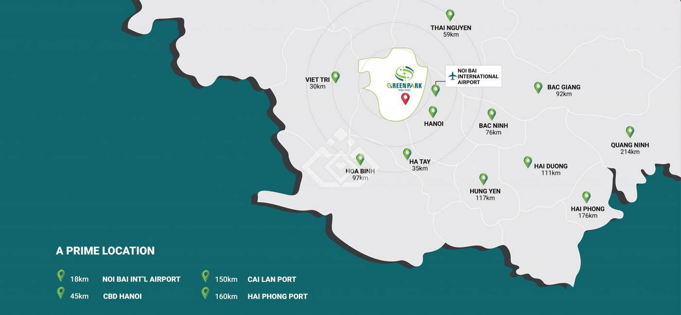 , liền kề cao tốc Nội Bài – Lào Cai (CT05), Quốc lộ 2A, Vành đai 4 Hà Nội, kết nối trực tiếp tới cảng Hải Phòng – cửa ngõ xuất nhập khẩu phía Bắc, đồng thời nằm trên hành lang kinh tế Côn Minh – Lào Cai – Hà Nội – Hải Phòng. Từ dự án có thể kết nối thuận tiện và linh hoạt với các dự án sản xuất công nghiệp lớn lân cận như SEV Samsung Bắc Ninh, SEVT Samsung Thái Nguyên, Huyndai Ninh Bình. Ngoài ra, dự án nằm gần siêu cảng Vietnam SuperPort™ – ICD Vĩnh Phúc, vị trí chiến lược giúp hình thành hệ sinh thái liên hoàn công nghiệp – logistics – dịch vụ, mang đến sự thuận lợi to lớn cho các doanh nghiệp trong chuỗi cung ứng toàn cầu.